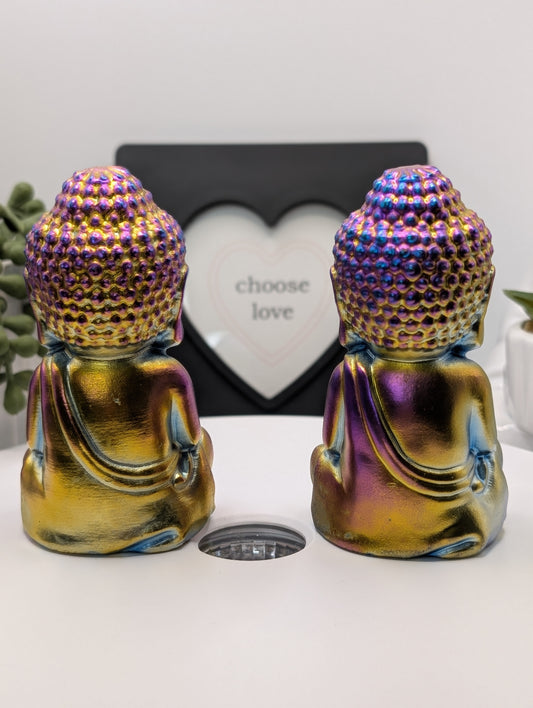 Titanium Aura Quartz Buddha Statue - Beautiful Rainbow of Colors!