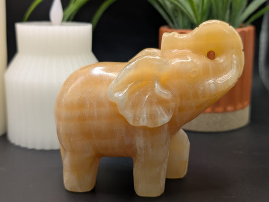Honey Calcite Elephant Carving