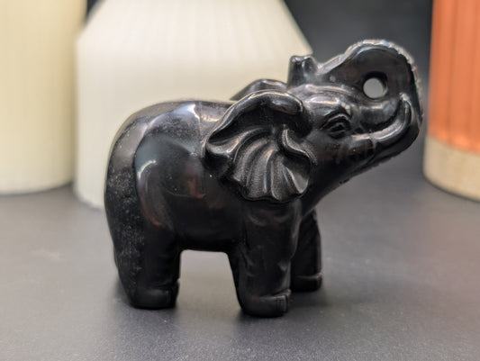 Black Obsidian Elephant Carving - Figurine