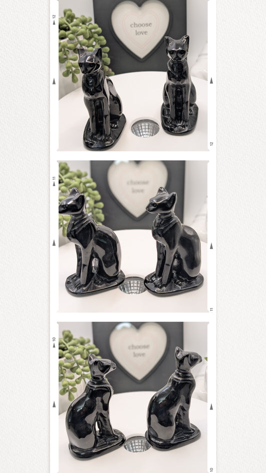 Black Obsidian Sphynx Cat Carving