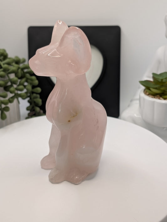 Large Rose Quartz Sphynx Cat Carving - Statement Piece!