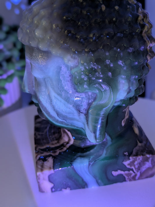 Volcano Agate Buddha Bust Carving - Huge Statement Piece! Excellent UV Reaction!
