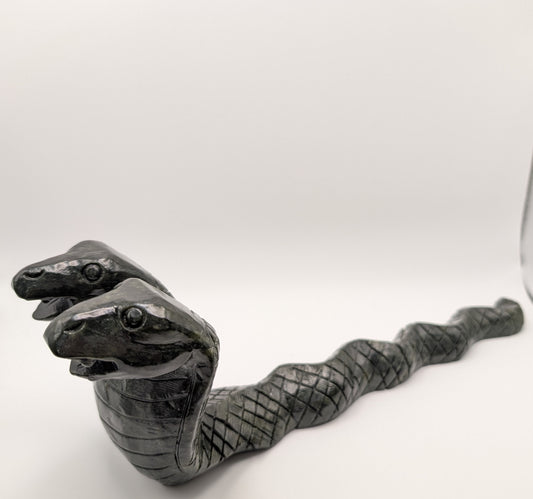 Hand-Carved Jade Double-Headed Snake – 13-Inch Powerful Green Jade Sculpture
