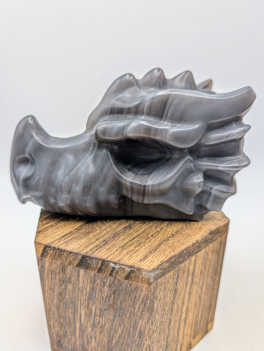 Banded Silver Obsidian Crystal Dragon Head Carving
