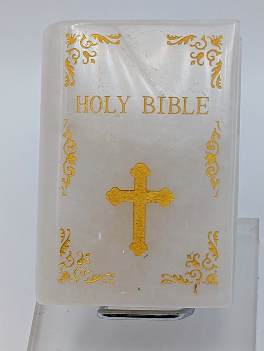 Clear Quartz Crystal Holy Bible Carving with display stand