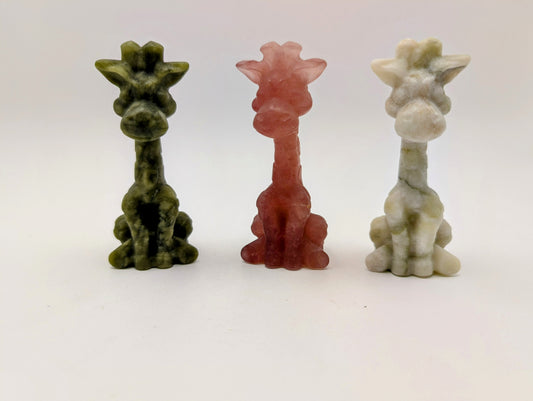 Crystal Giraffe Carvings in Various Stones