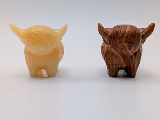 Crystal Highland Cow Carvings in Various Stones