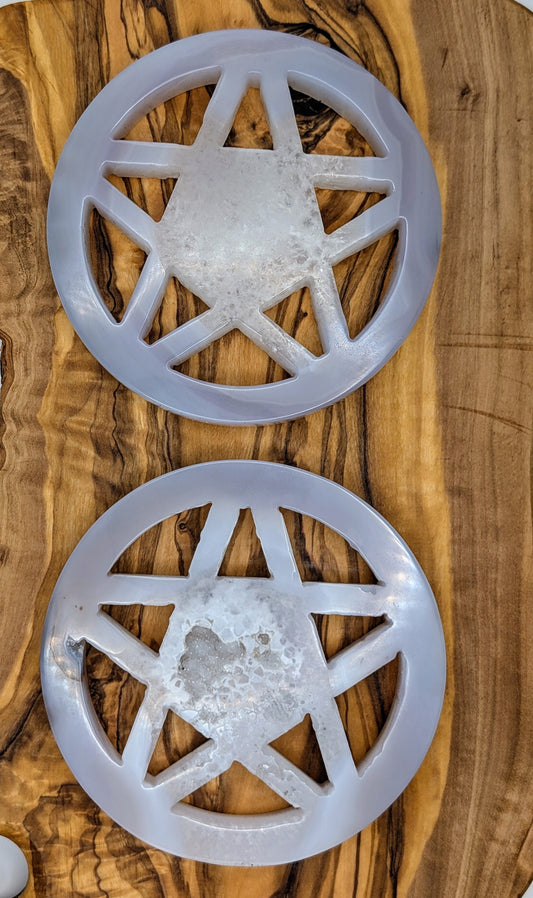 Large Druzy Agate Crystal Pentagrams with Custom Metal Display Stands - 3.5" Pentagrams