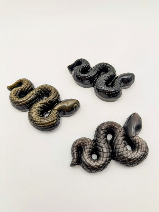 Black, Silver or Golden Obsidian Snake Carvings