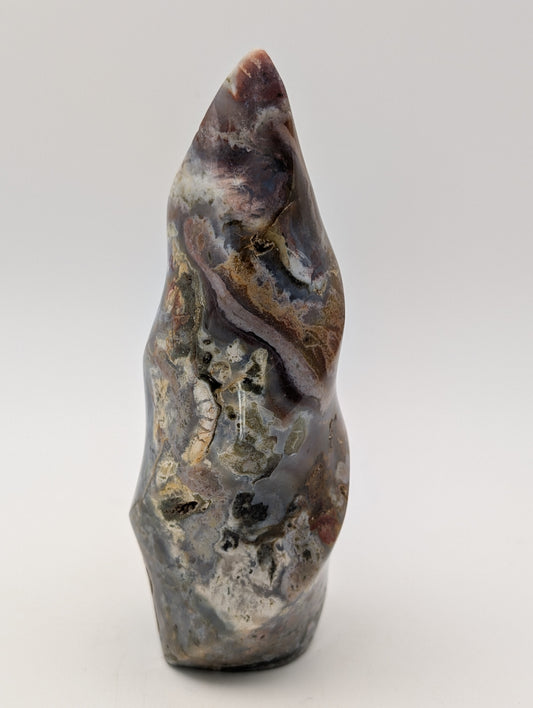 Beautiful Earthy Looking Ocean Jasper Crystal Flames in gorgeous blues, greens, grays with druzy