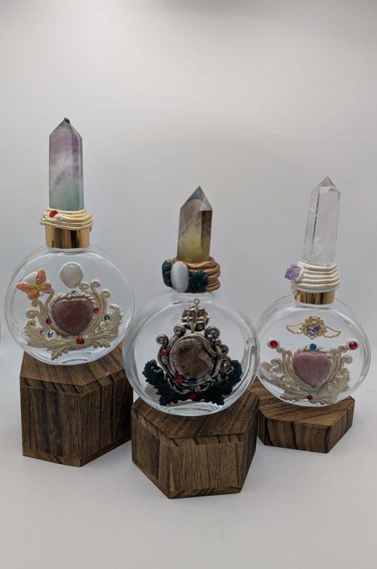 Crystal Infused Glass Bottles with Polished & Raw Stones – Airtight Lid & Tumbles for Moon Water Charging