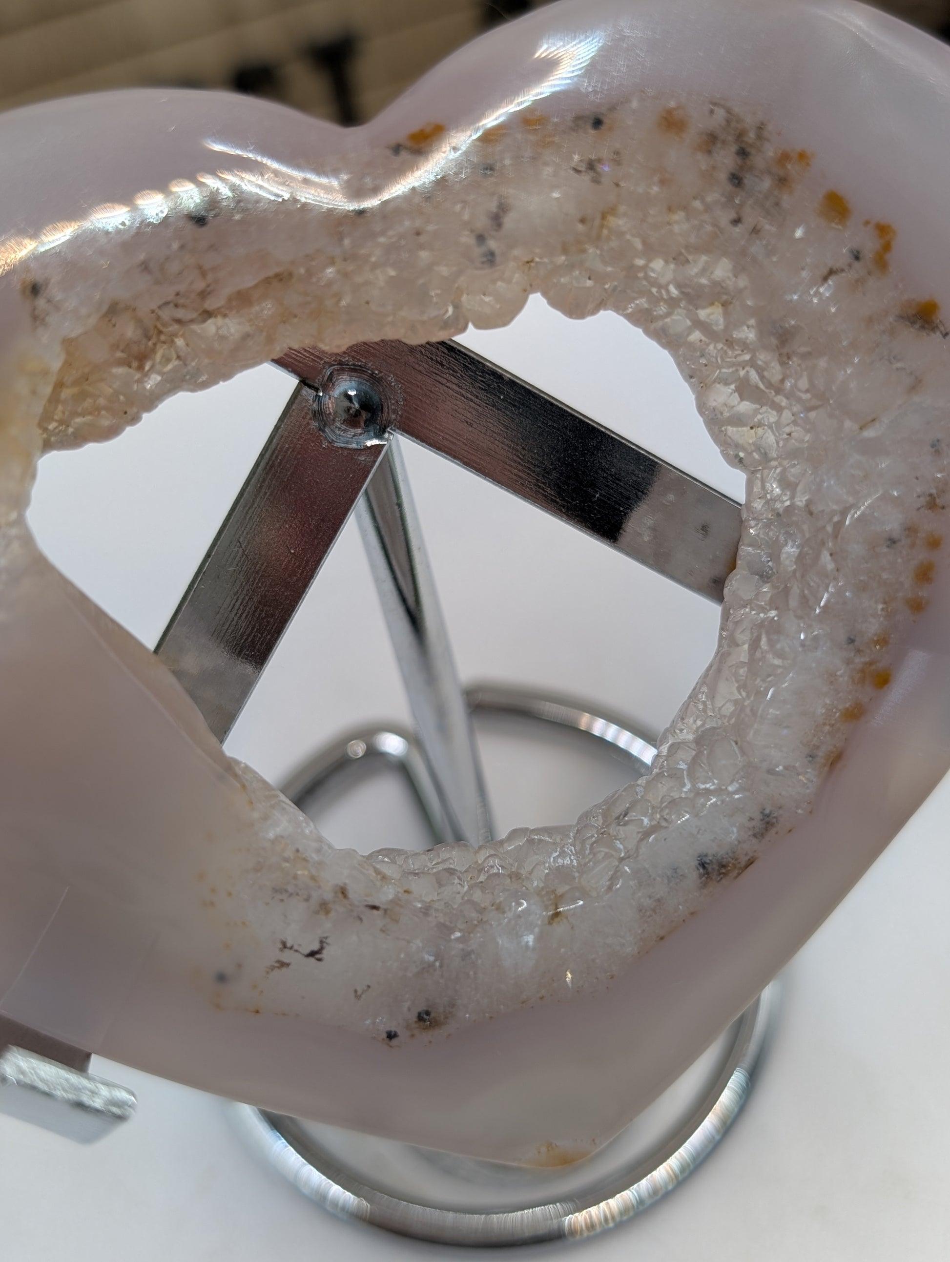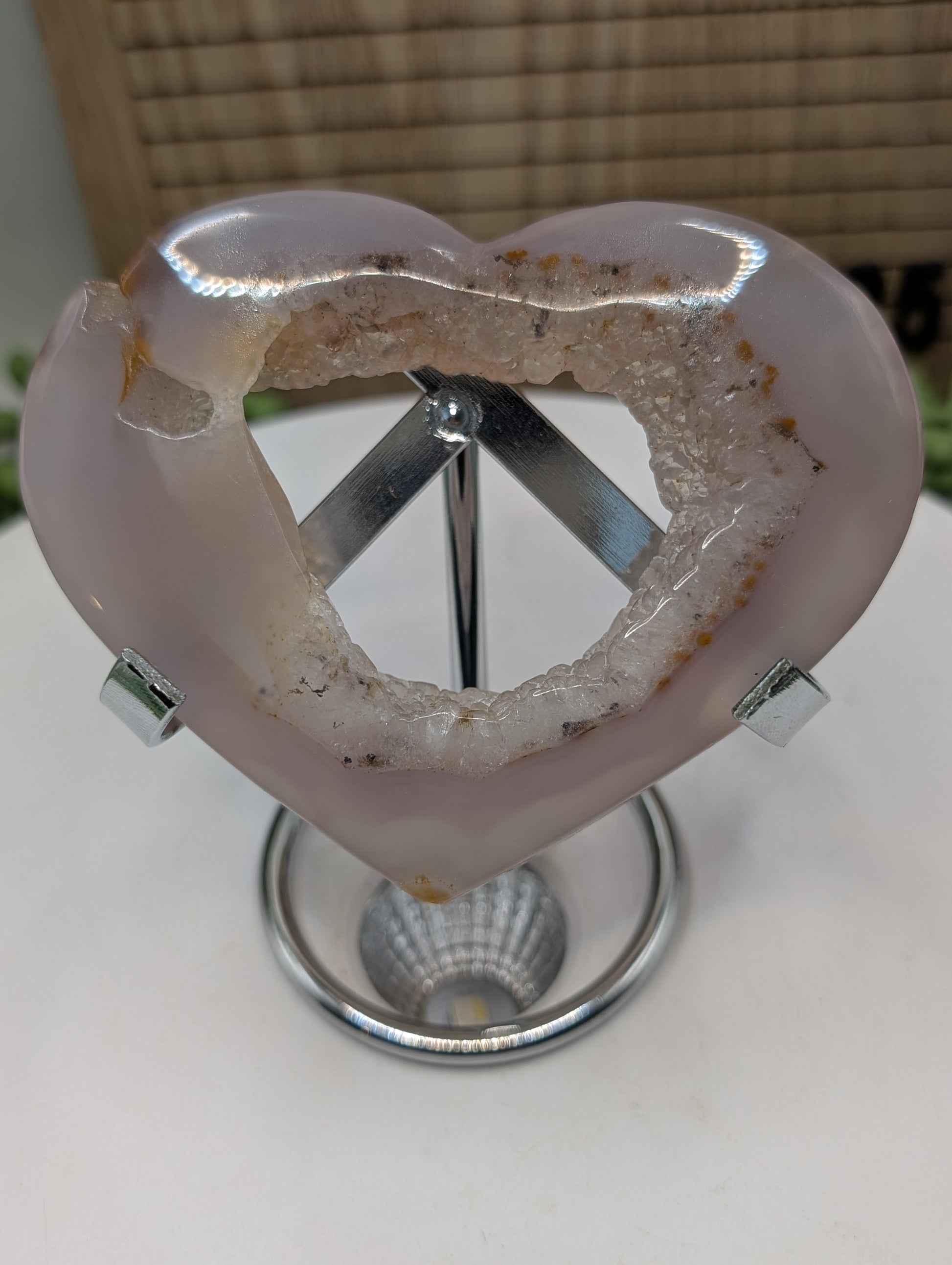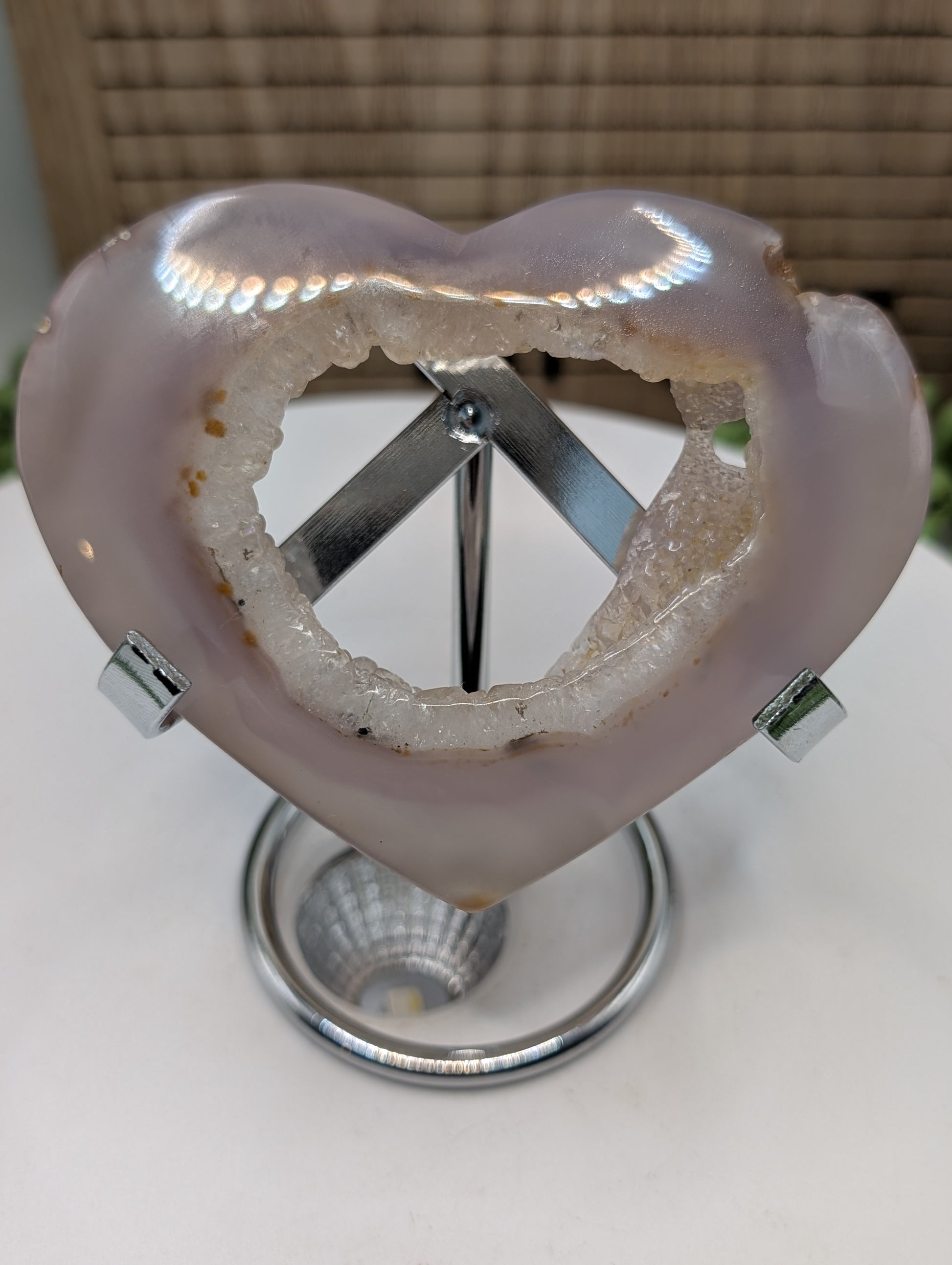 A sparkling symbol of calm and balance, this gray druzy agate heart shimmers with tiny crystal clusters that radiate soothing energy. Known for promoting inner peace, stability, and emotional healing, gray agate is said to ground the spirit while the druzy surface amplifies energy and positivity. Perfect for meditation, stress relief, or simply bringing a touch of sparkle and serenity into your space.