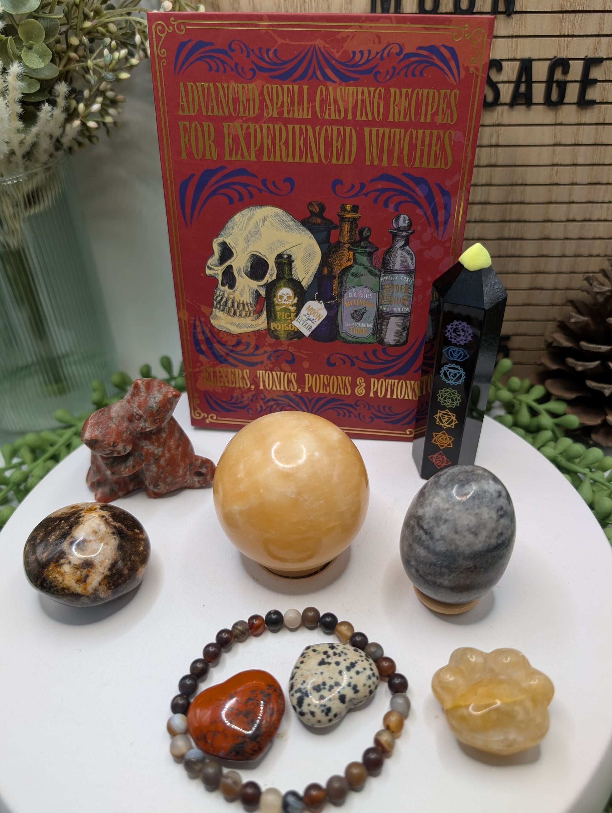 🔮 Keywords: crystal bundle, cat carving, kitten crystal, yellow calcite, brecciated jasper, hyalite opal, chakra obsidian tower, quartzite egg, dalmatian jasper heart, red jasper heart, agate bracelet, animal crystals, boho crystal box, witchy gift set, grounding crystals, protection set, spell book box, purrfect gift, healing crystals