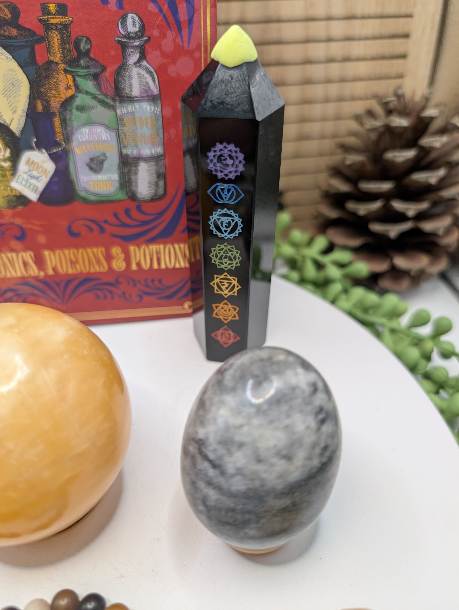 🔮 Black Obsidian Tower (Chakra Etched) — energy alignment and spiritual protection